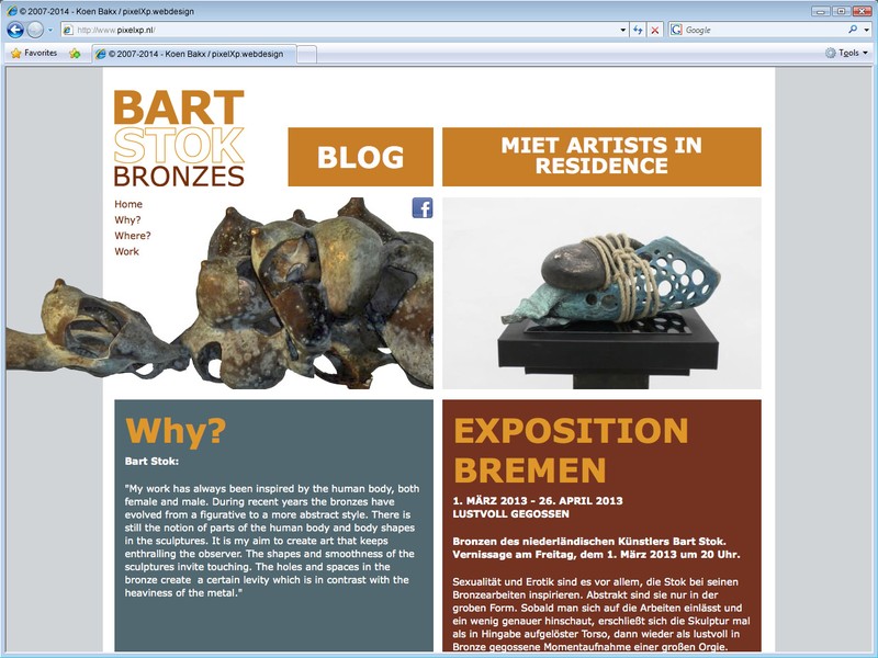 Bart Stok maakt abstracte bronzen beelden, die zijn geïnspireerd door het menselijk lichaam. Delen van het menselijk lichaam en lichaamsvormen zijn vaak aanwezig in de sculpturen.