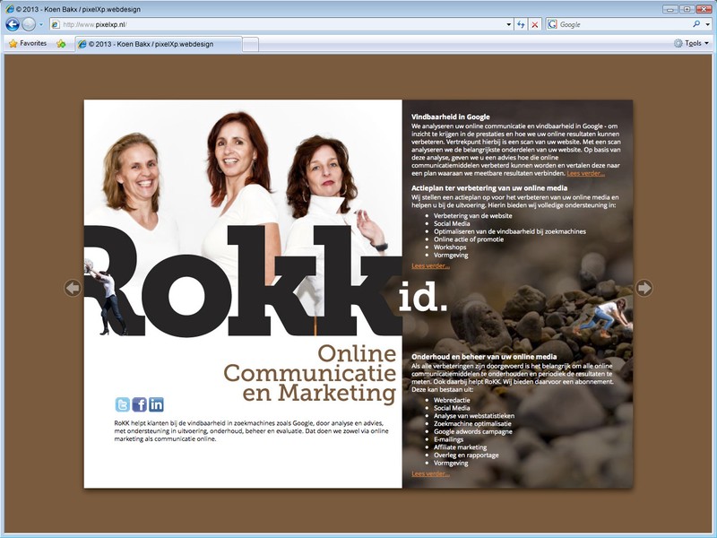 RoKK helpt klanten bij de vindbaarheid in zoekmachines zoals Google, door analyse en advies, met ondersteuning in uitvoering, onderhoud, beheer en evaluatie.