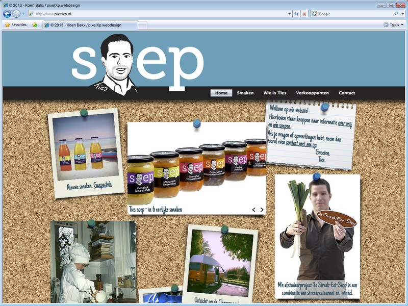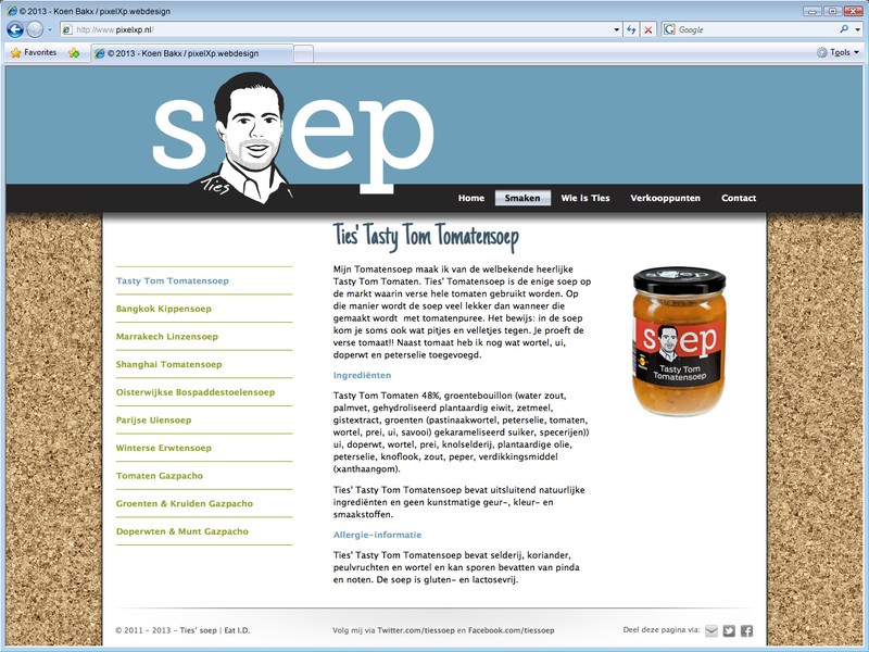 Ties’ Soep maakt het toch wat saaie soep-schap in de supermarkt wat interessanter, met echt lékkere soepen. Lang houdbaar, maar zonder toevoegingen die Ties zelf ook niet zou willen eten.